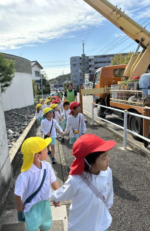 行く途中、ショベルカーの下を通り抜けると興味津々で見ていたみんなです💜近くで見ることができて嬉しかったね😆