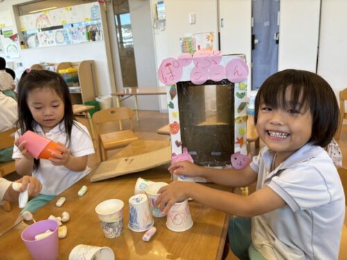 「苦い」っていうお友だちと「美味しい」と言って一気飲みしてしまうお友だちもいました![]()