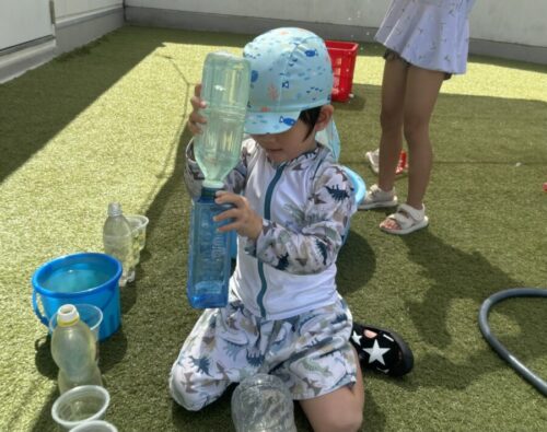 色水遊びをしたり、シャワーの水圧で遊んだりして色んな発見をしながら夢中に遊ぶみんなでした💛