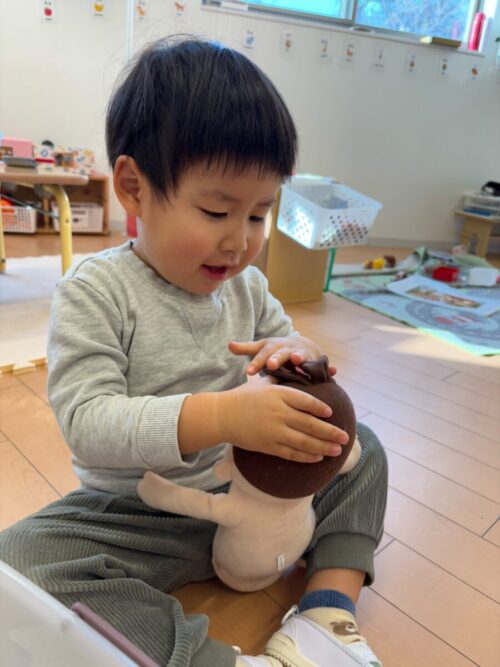 うさぎぐみさんの朝の様子です☀️お人形を優しくお世話しながら夢中になって遊んでいて微笑ましかったです🥰