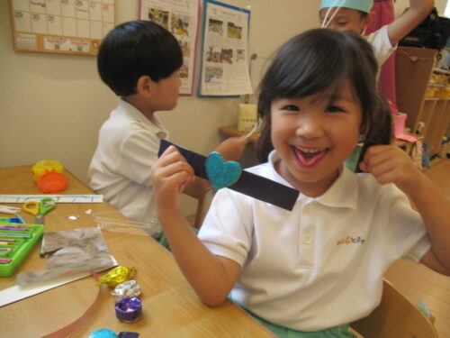三つ編みに挑戦するお友だちもいましたよ🎶編み方を教えてもらうとすぐに覚えて、早速一人で編むことができていましたよ👏