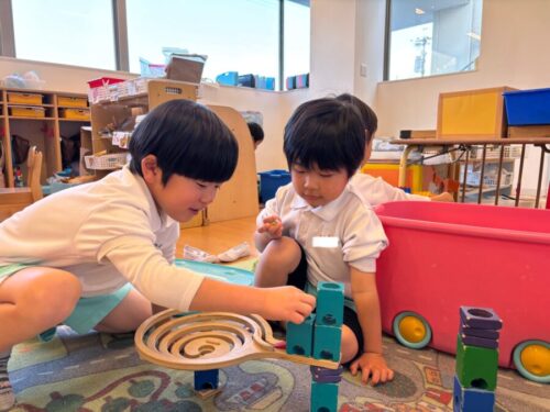 朝から楽しそうに遊ぶみんな💖「こうやったらどう❓」「いいね👍」などとお友だちと話し合いながら、楽しく遊びを進めていましたよ🎶
