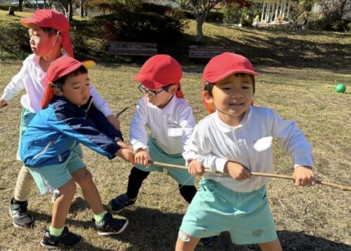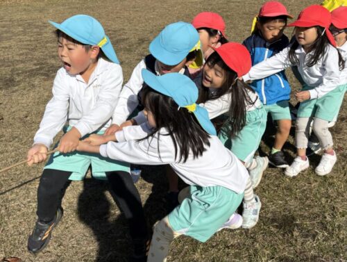 綱引きのあとは蔓で長縄跳びもして、元気いっぱいのみんなでした😄