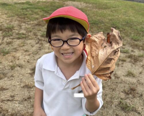「お顔と同じくらいの葉っぱ見つけた🍂」と見せにきてくれたおともだち💕落ち葉も木の実もたくさんあったね😊