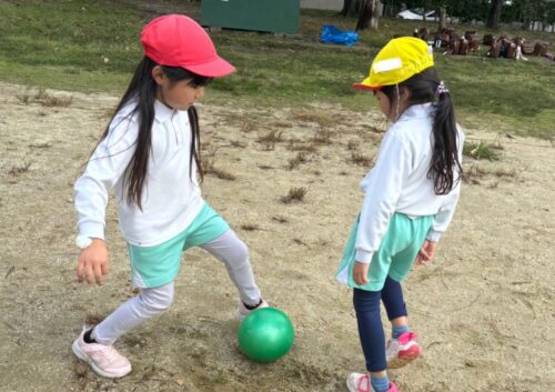 ハンドを使わないことや枠線の中で行うことなどのルールを知らせると、すぐに理解して夢中になって遊んでいましたよ😄