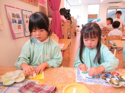 今日は敬老の日のはがき製作を行いました✨スポンジを使った技法をしたり、、、💕