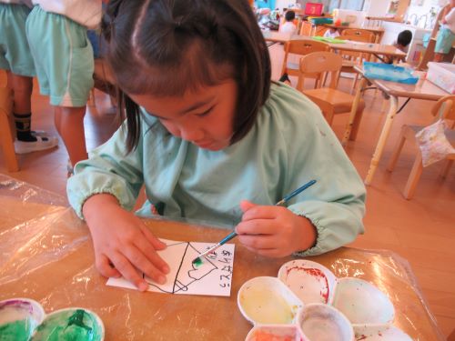自由に絵を描いて色をつけたりして素敵なはがきが完成しました🎵