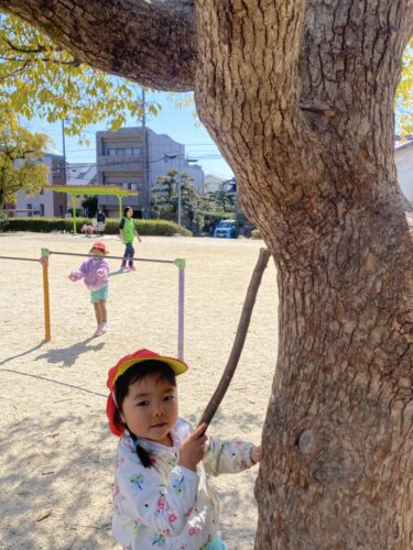 みんなで木の皮を隠しごっこしたり、かくれんぼしたりして遊びました🌳