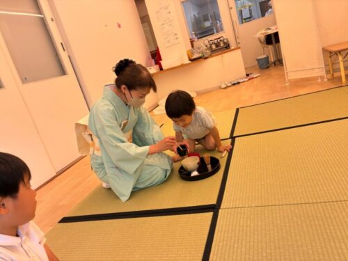 お茶をたてる様子を興味津々で見るお友だち![]()