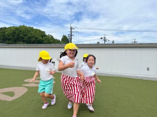 パラバルーンの後は屋上で運動会ごっこをやりました![]()